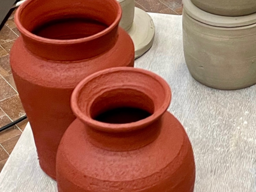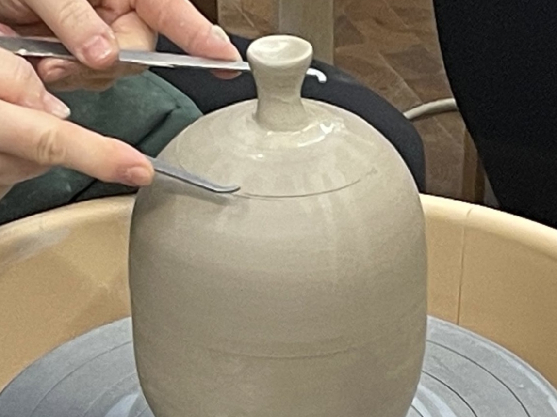 - Fokus: Drehen an der Töpferscheibe – Gefäße formen, Aufbautechniken, Henkelziehen, Oberflächen und Glasurideen