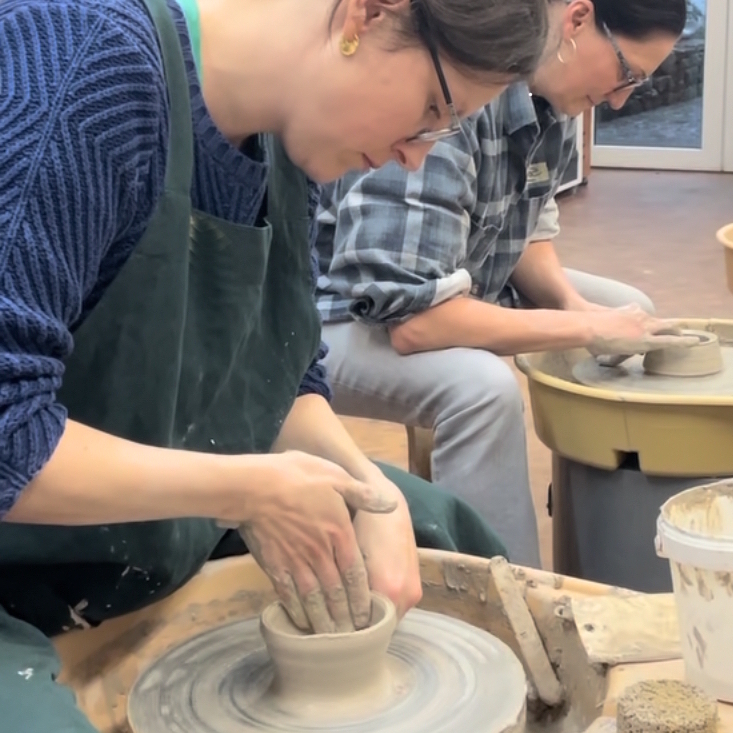 Wenn du nach dem Schnupperkurs tiefer einsteigen möchtest, ist der „Einsteigerkurs Drehen an der Töpferscheibe“ ideal. Hier kannst du die Grundlagen vertiefen und mehrere Gefäße in größerer Vielfalt herstellen.