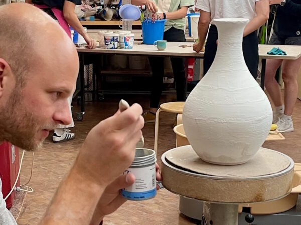 Wir arbeiten mit traditionellen Grifftechniken der Handwerkerinnung, wie sie in der Lehrlingsausbildung vermittelt werden. Doch hier geht es um mehr: mithilfe eines „Bodyscans“ analysieren wir deine Körperhaltungen und Bewegungsabläufe – und coachen dich aktiv dabei, deine Griffe und Positionen weiterzuentwickeln. Du bekommst rundum Begleitung auf dem Weg zum Profi, mit interessantem Austausch im Team. Wenn du möchtest, kannst du dich auch zu unseren Glasurentwicklungsseminaren anmelden!